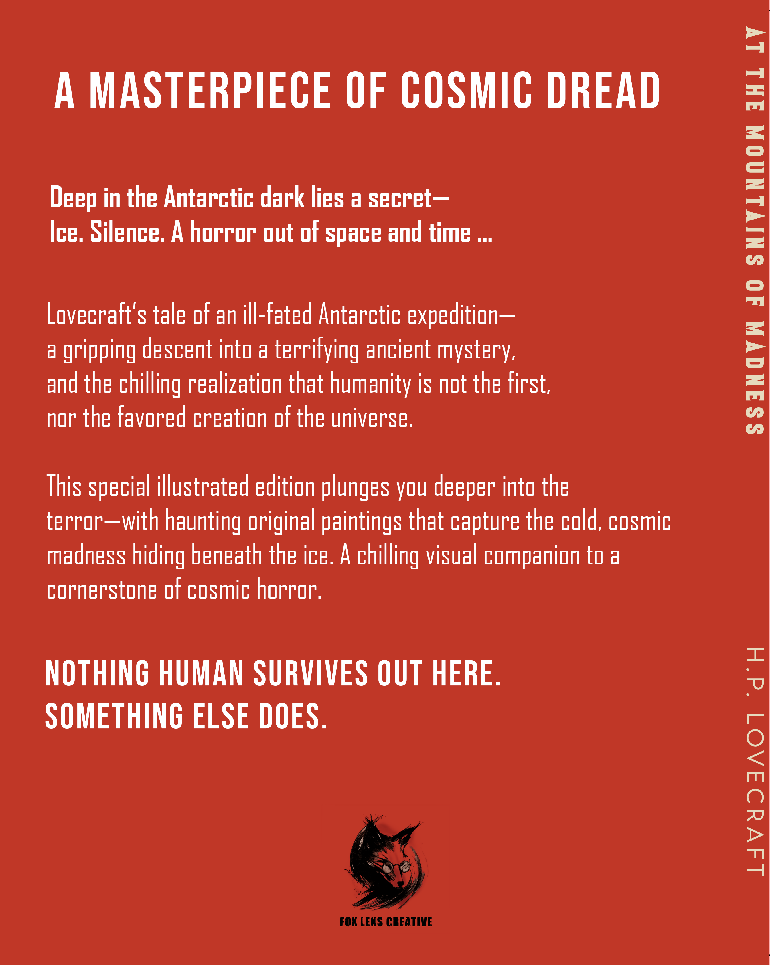 H.P. Lovecraft’s tale of an ill-fated Antarctic expedition— a gripping descent into a terrifying ancient mystery, and the chilling realization that humanity is not the first, nor the favored creation of the universe.